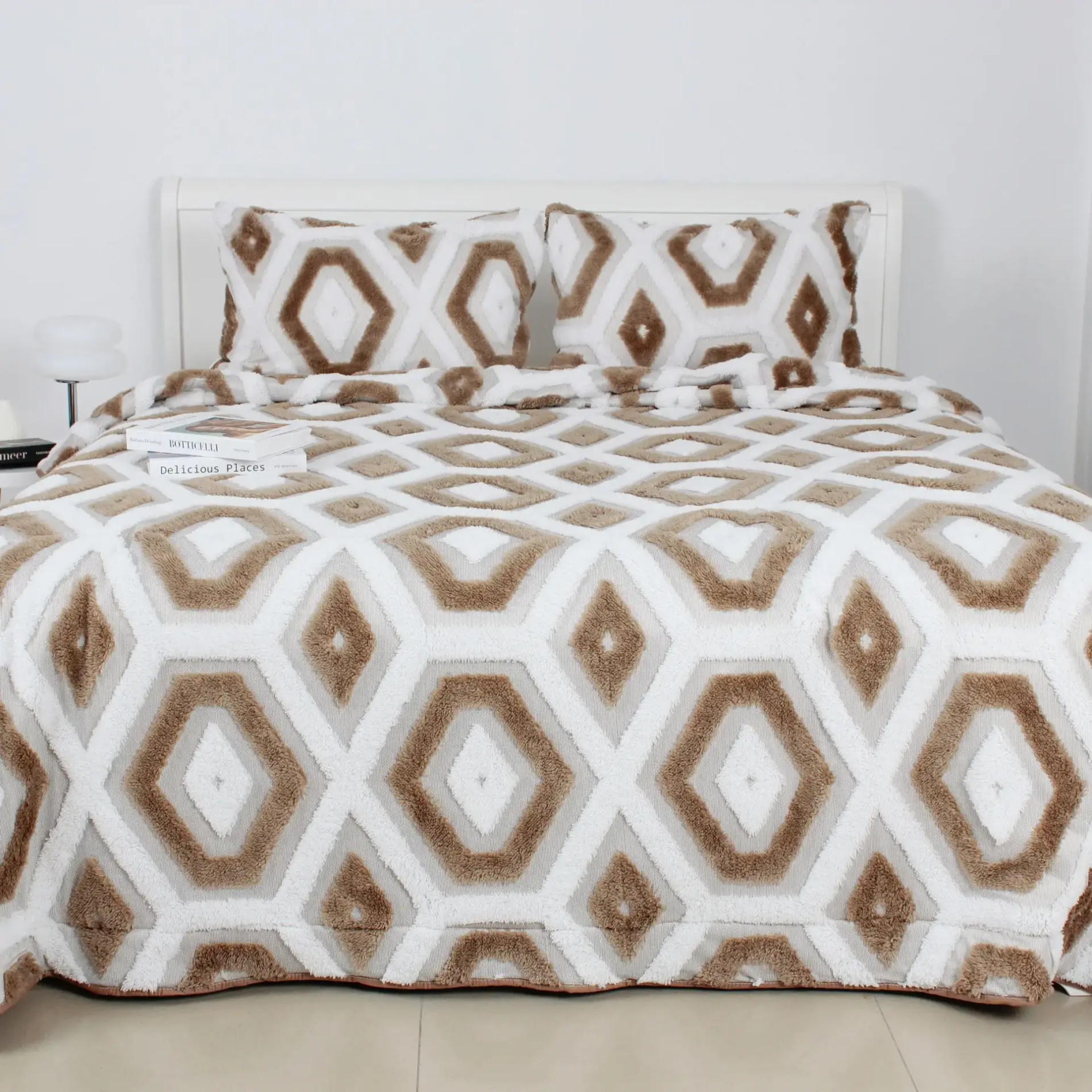 Cuvertura Boho este confort cu personalitate și un accent stilat pentru dormitor. Ornamentul geometric în estetică boho adaugă căldură și textură spațiului, iar blana artificială moale de la suprafață creează o senzație plăcută la atingere. Partea din spate, realizată din microfibră, asigură un contact confortabil cu pielea și comoditate în utilizarea zilnică.
