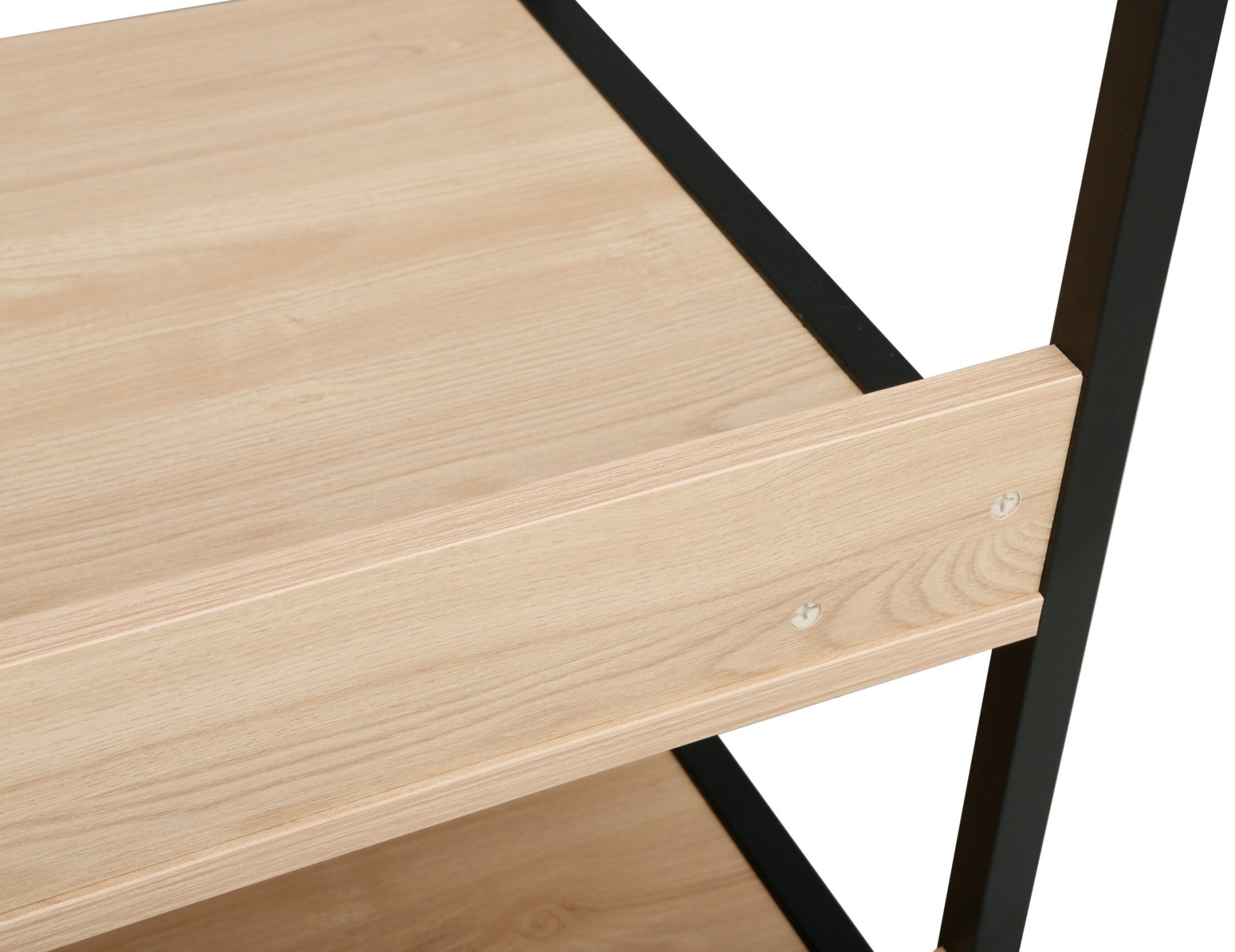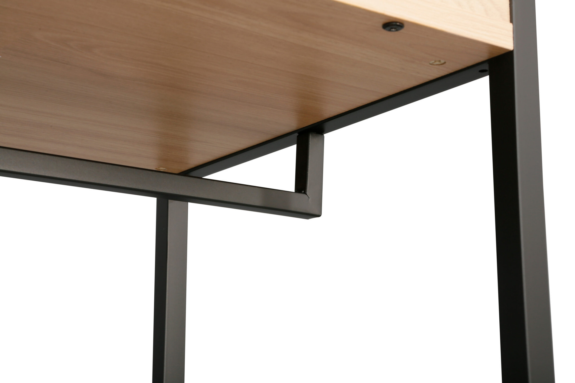 Blatul și rafturile sunt fabricate din PAL melaminat cu finisaj Stejar M37, oferind un aspect natural și cald, ideal pentru interioarele moderne.