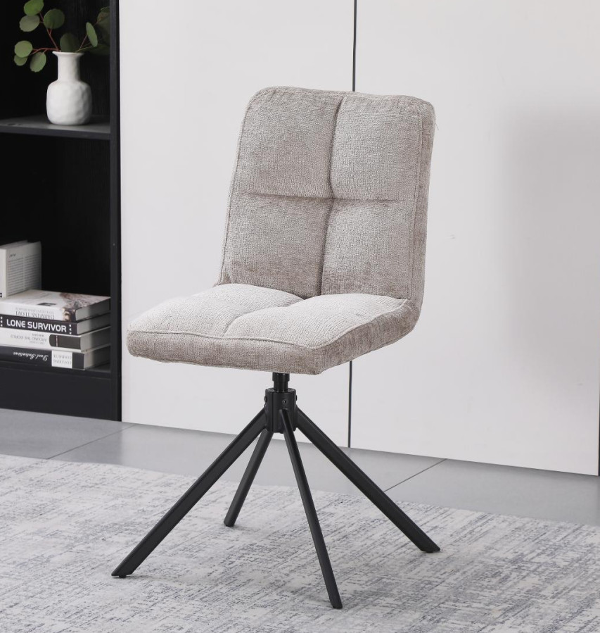 Scaunul DC 1081 se distinge prin mecanismul pivotant ingenios, care permite rotația și asigură revenirea automată la poziția inițială după utilizare. Șezutul de culoare bej este realizat pe un cadru de placaj cu umplutură din spumă poliuretanică, oferind un echilibru perfect între fermitate și confort. Picioarele negre din metal, vopsite electrostatic, completează aspectul modern și oferă stabilitate. Cu dimensiuni de 420x380x880 mm, este o piesă inovatoare și practică pentru orice locuință.