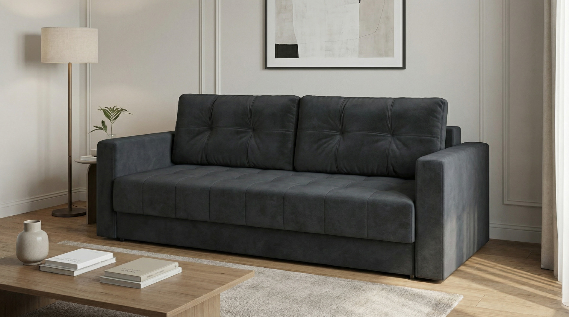 Canapeaua Dimaro combină designul contemporan cu funcționalitatea practică, fiind o alegere excelentă pentru cei care caută confort zilnic și stil modern.