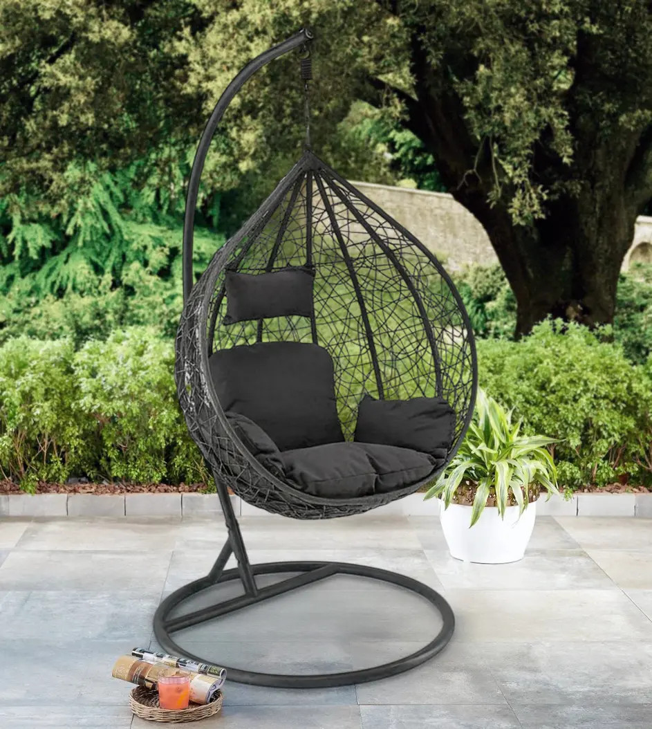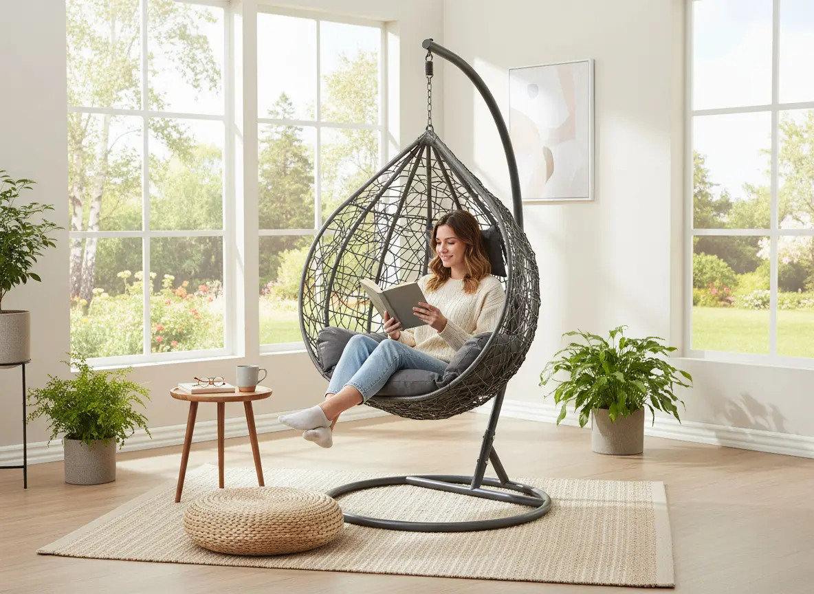 Locul de șezut generos, având o lățime de 107 cm, înălțime de 118 cm și adâncime de 68 cm, oferă o poziție ergonomică și relaxantă. Dimensiunile totale ale ansamblului sunt de 100 cm lățime, 200 cm înălțime și 100 cm adâncime, permițând integrarea ușoară în diverse spații. Setul include un suport stabil și o pernă moale pentru un plus de confort, suportând o sarcină maximă de 150 kg. Este o piesă de mobilier versatilă, perfectă pentru momentele de liniște.