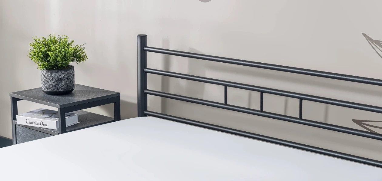 Finisajul în culoare neagră și gri oferă un aspect sobru și modern, ușor de integrat în diferite stiluri de amenajare interioară. Patul se livrează fără saltea, lăsând libertatea de a alege varianta de confort dorită.