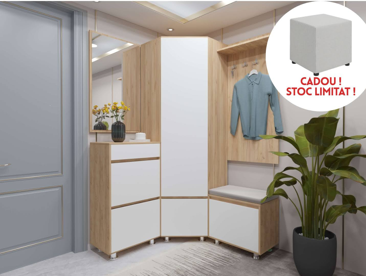 Antreul modular Krafti este o piesă de mobilier versatilă și practică, perfectă pentru a organiza spațiul de intrare al casei sau apartamentului tău.