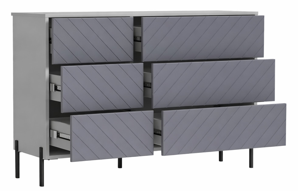 Comoda Leada îmbină designul modern cu funcționalitatea, fiind potrivită pentru dormitor, living sau hol. Realizată din PAL de 18 mm, clasă E1, oferă durabilitate și respectă standardele europene de calitate. Cu o înălțime de 86 cm, lățime de 128,7 cm și adâncime de 41,4 cm, asigură spațiu generos pentru depozitare, păstrând în același timp un aspect compact și elegant. Liniile simple și proporțiile echilibrate o fac ușor de integrat în orice interior contemporan.