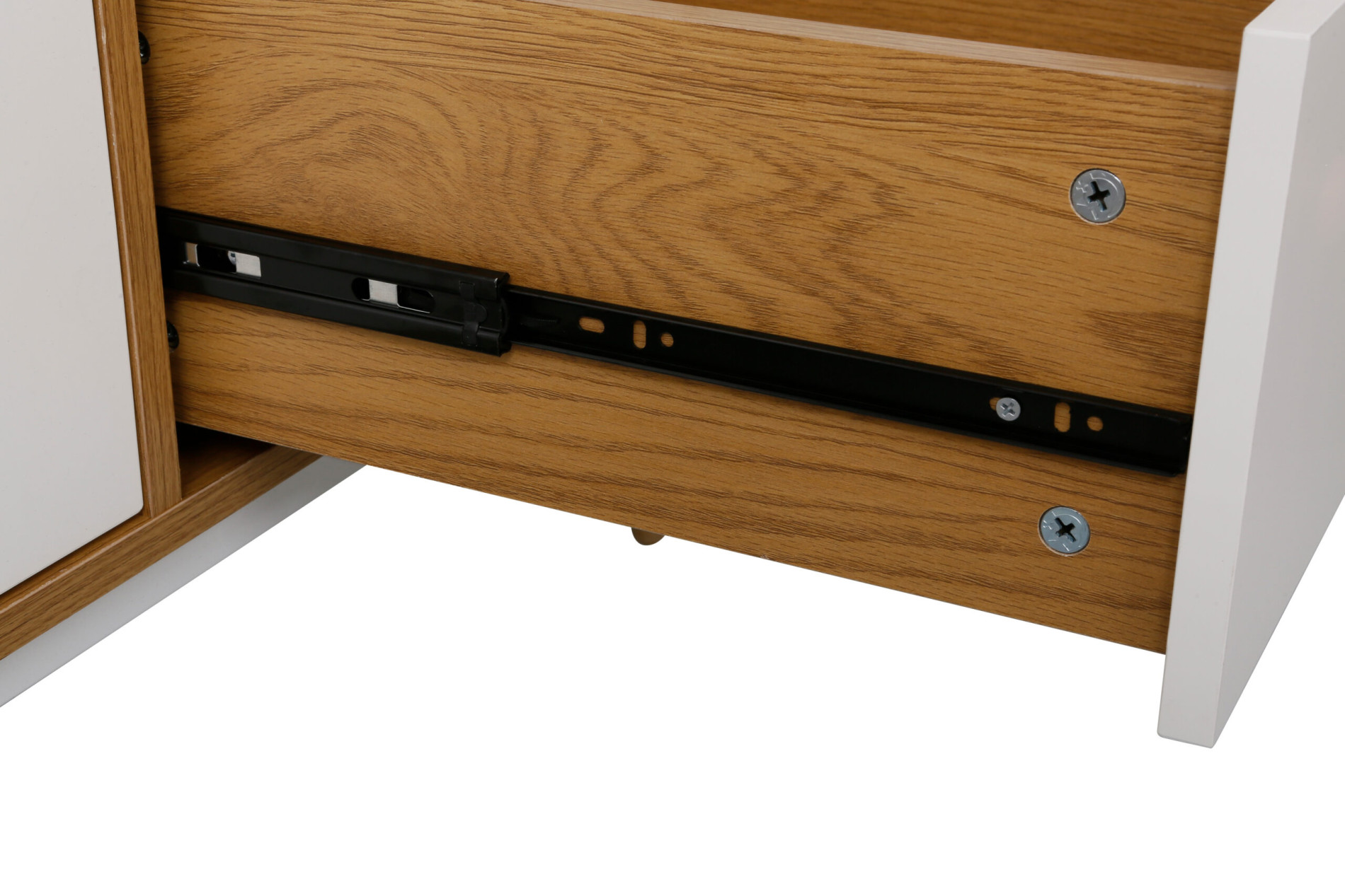 Structura este susținută de un cadru metalic vopsit în câmp electrostatic, ceea ce asigură stabilitate și o durată lungă de viață, completând armonios designul minimalist. Cele două uși oferă acces la un spațiu generos de depozitare, potrivit pentru documente, textile sau obiecte personale.