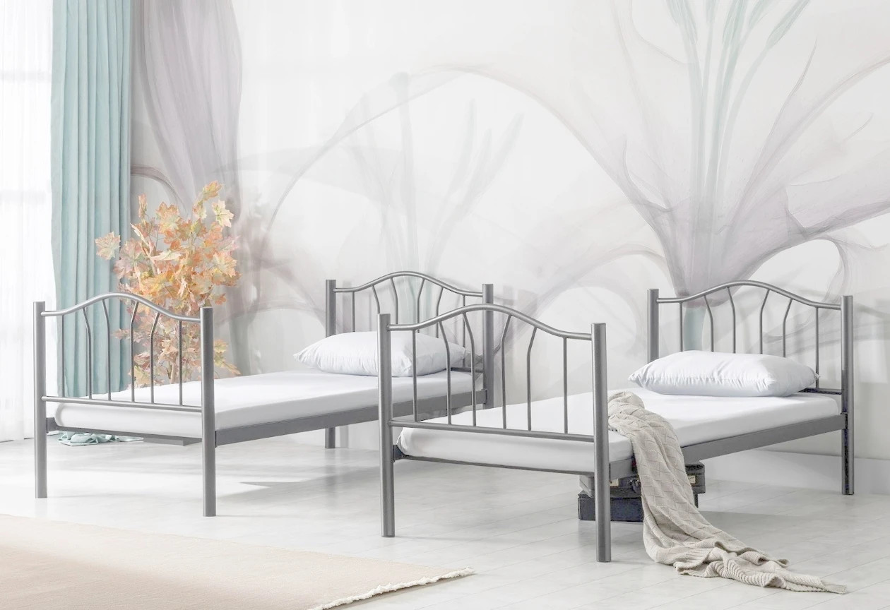 Patul etajat Evger R-25 este o soluție practică și rezistentă, potrivită pentru camera copiilor. Structura este realizată integral din metal, ceea ce garantează stabilitate și o utilizare îndelungată. Cadrul metalic de susținere este inclus, astfel nu este nevoie de achiziționarea separată a bazei pentru saltea.