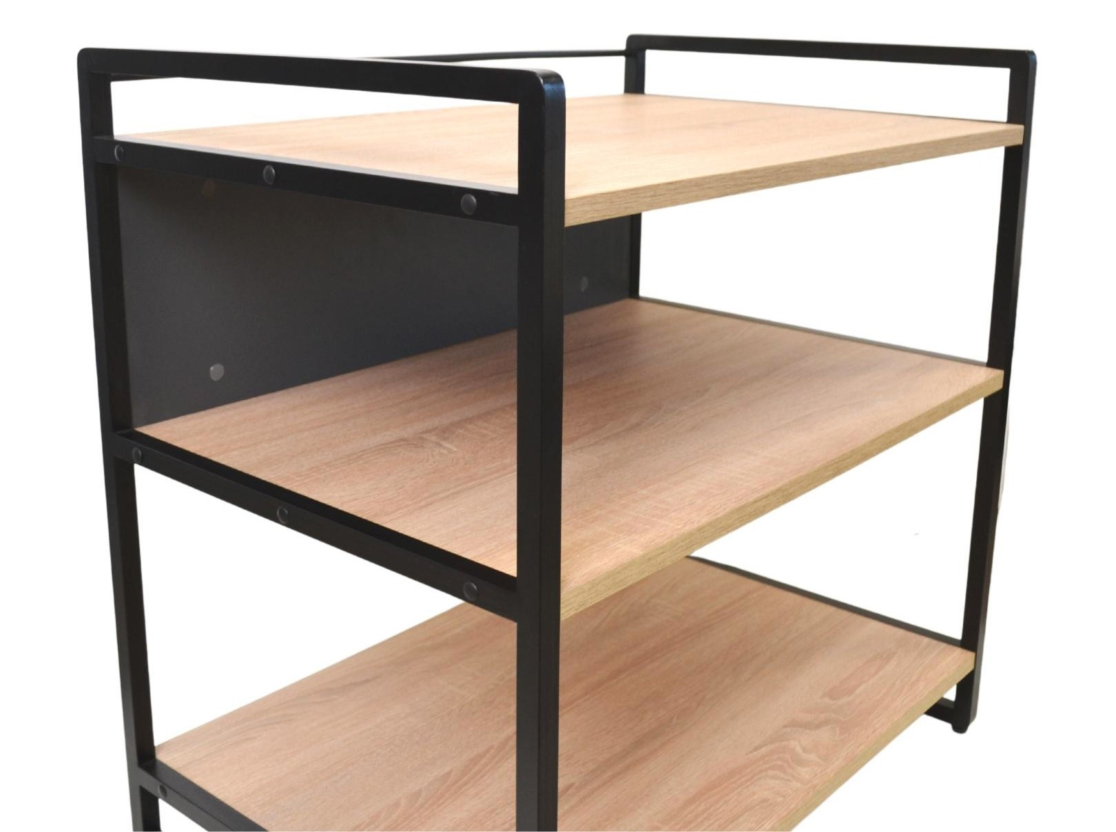 Fabricat pe o structură metalică sudată rezistentă, vopsit în câmp electrostatic și blat din PAL melaminat, raftul dispune de 3 polițe generoase deschise pentru păstrarea bunurilor și materialelor precum cartușe, cerneală, hârtie și accesorii birotică.