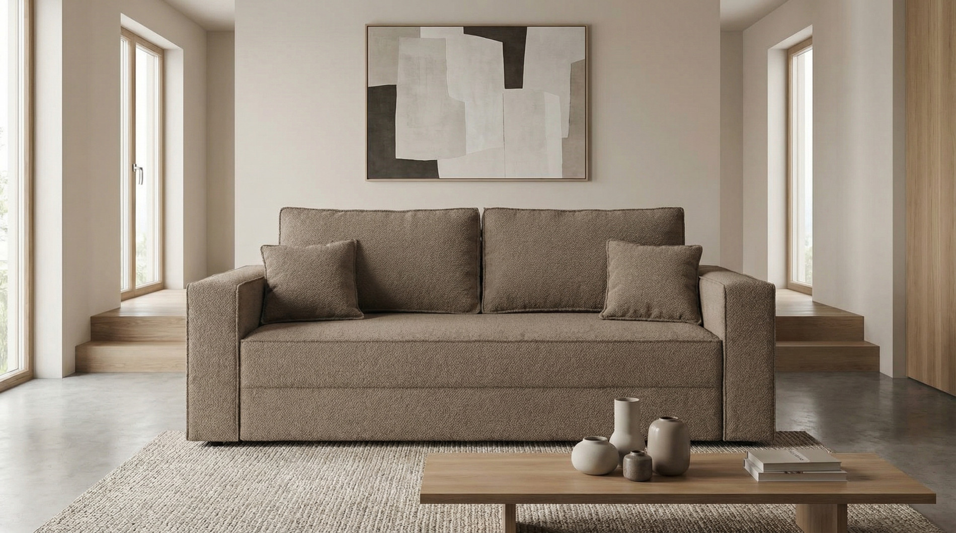 Design elegant – stil contemporan, cu linii curate și brațe laterale late, ce adaugă un plus de confort și estetică.