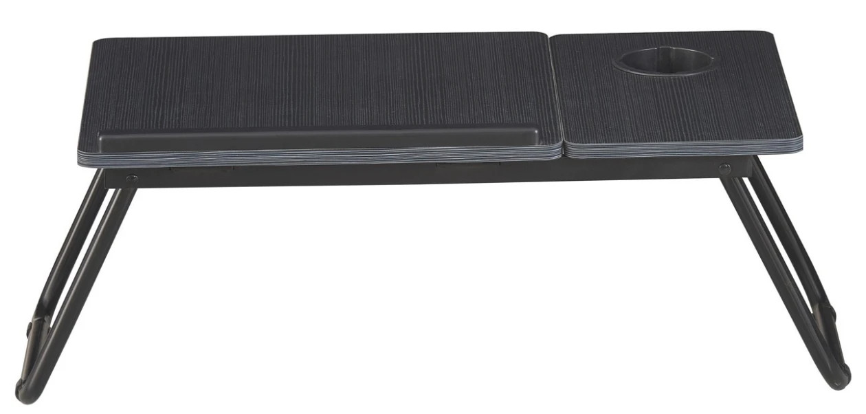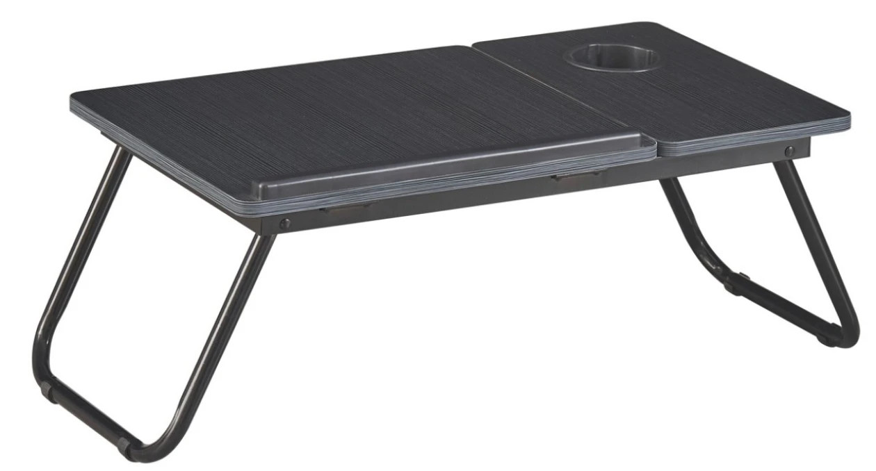 Măsuța pentru laptop pliabilă SmartLine 2.0 este practică și ușor de utilizat, ideală pentru lucrul confortabil oriunde. Compatibilă cu laptopuri de până la 15,4 inch, este realizată din metal rezistent și MDF, cu finisaj elegant culoare wenge. Dispune de unghi reglabil pentru o poziție ergonomică și o înălțime maximă de 32 cm. Dimensiunile de 55 × 25 cm oferă un spațiu optim de lucru, iar suportul pentru cană adaugă un plus de funcționalitate.
