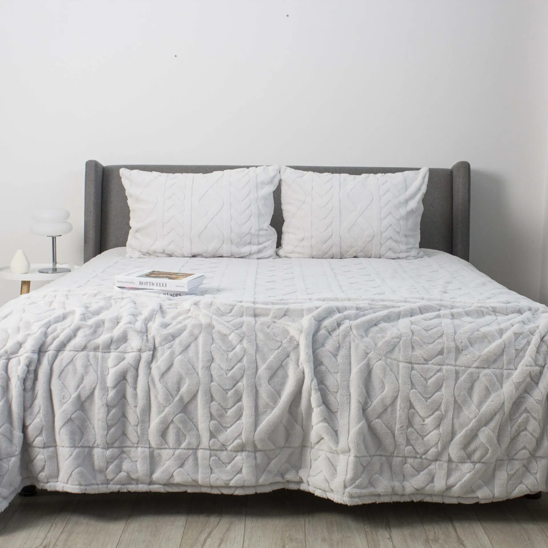 Creează în dormitor o atmosferă de liniște și căldură cu cuvertura Soft Angora. Partea superioară, realizată din țesătură premium Angora Jacquard, are o textură rafinată și un luciu delicat, iar partea inferioară din velur moale din poliester oferă o senzație deosebită de finețe la atingere.