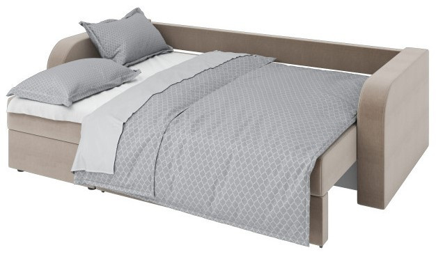 В сложенном виде диван имеет компактные размеры. Модель оснащена современным и простым в использовании механизмом трансформации «Еврокнижка», который подходит для ежедневного использования. За несколько секунд можно легко разложить диван в просторное спальное место, просто убрав декоративные подушки, выдвинув сиденье вперёд и опрокинув спинку.
