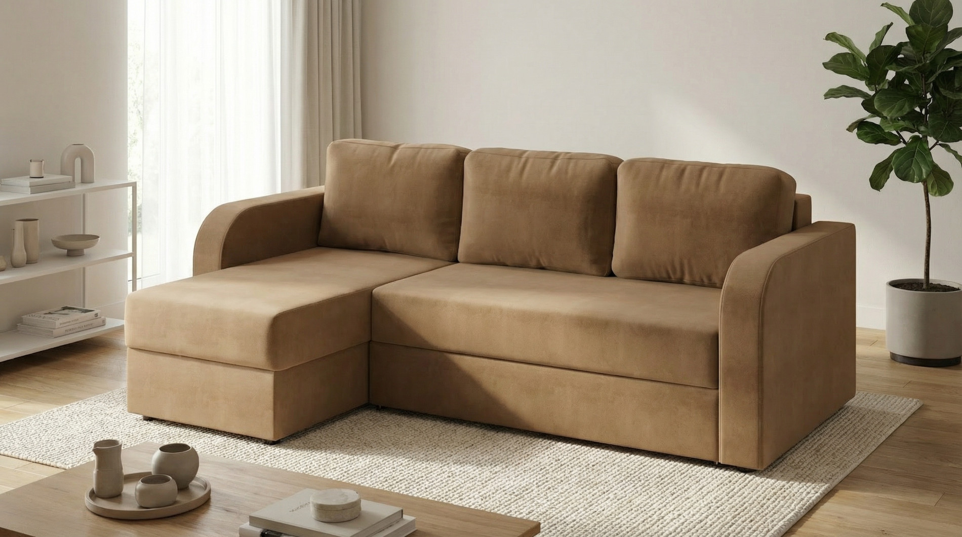Диван относится к категории угловых моделей и прекрасно подходит для обустройства комфортной зоны отдыха в просторной гостиной. Он обеспечивает удобное размещение большой семьи или компании друзей. Оптимальное место для установки — угол комнаты, что позволяет рационально использовать пространство и сделать комнату более эргономичной.