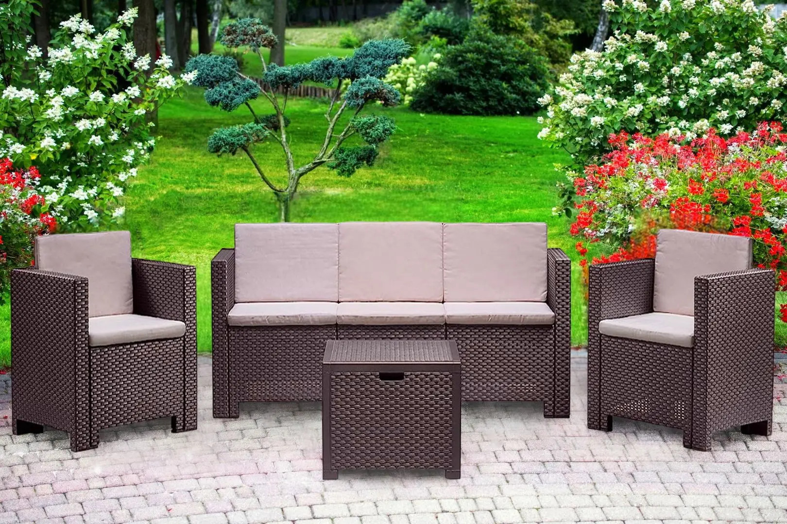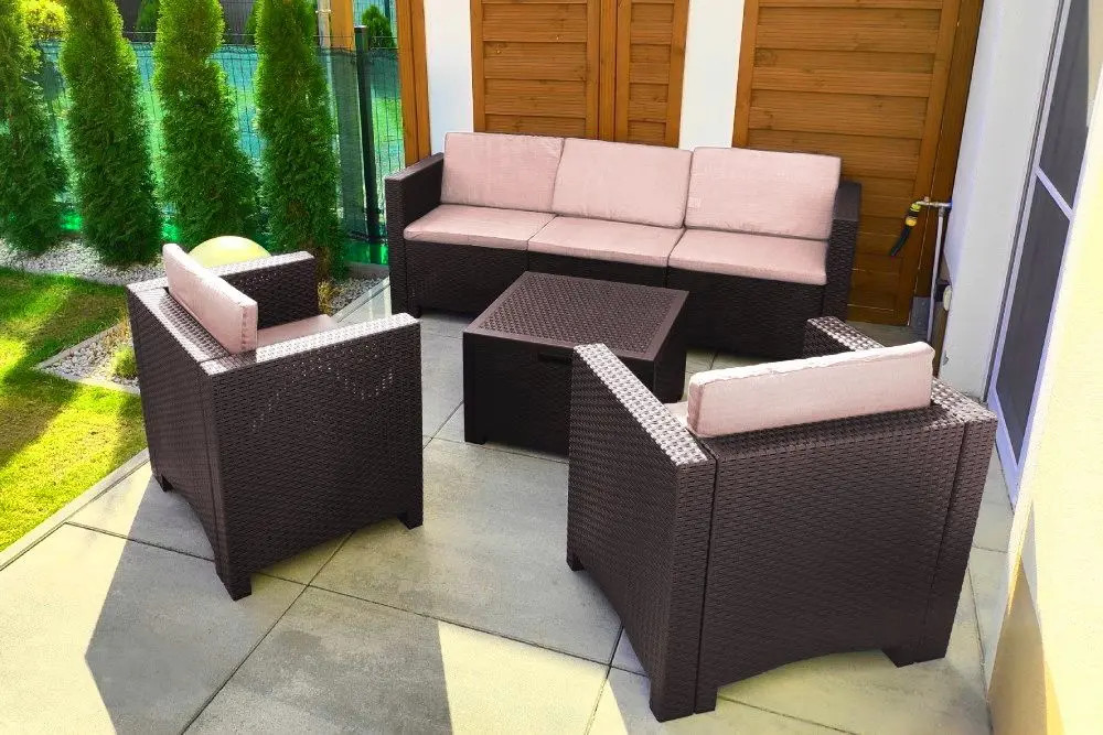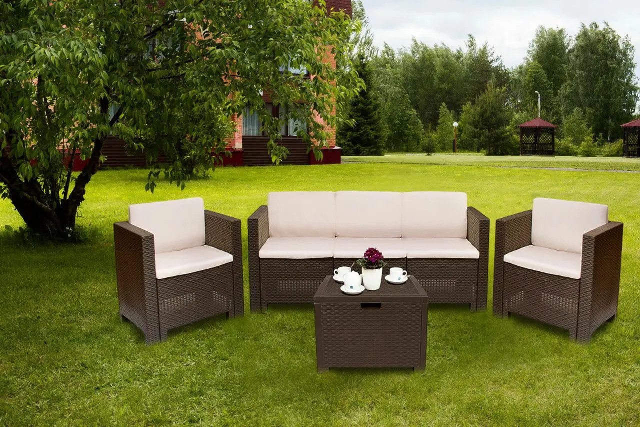 Изготовленный из полипропилена, этот набор мебели воспроизводит роскошный вид натурального ротанга, но обладает дополнительными преимуществами, которые делают его идеальным для использования на улице. Полипропилен — прочный и долговечный материал, способный противостоять солнечному свету, влаге и другим погодным условиям, сохраняя при этом свою привлекательность.