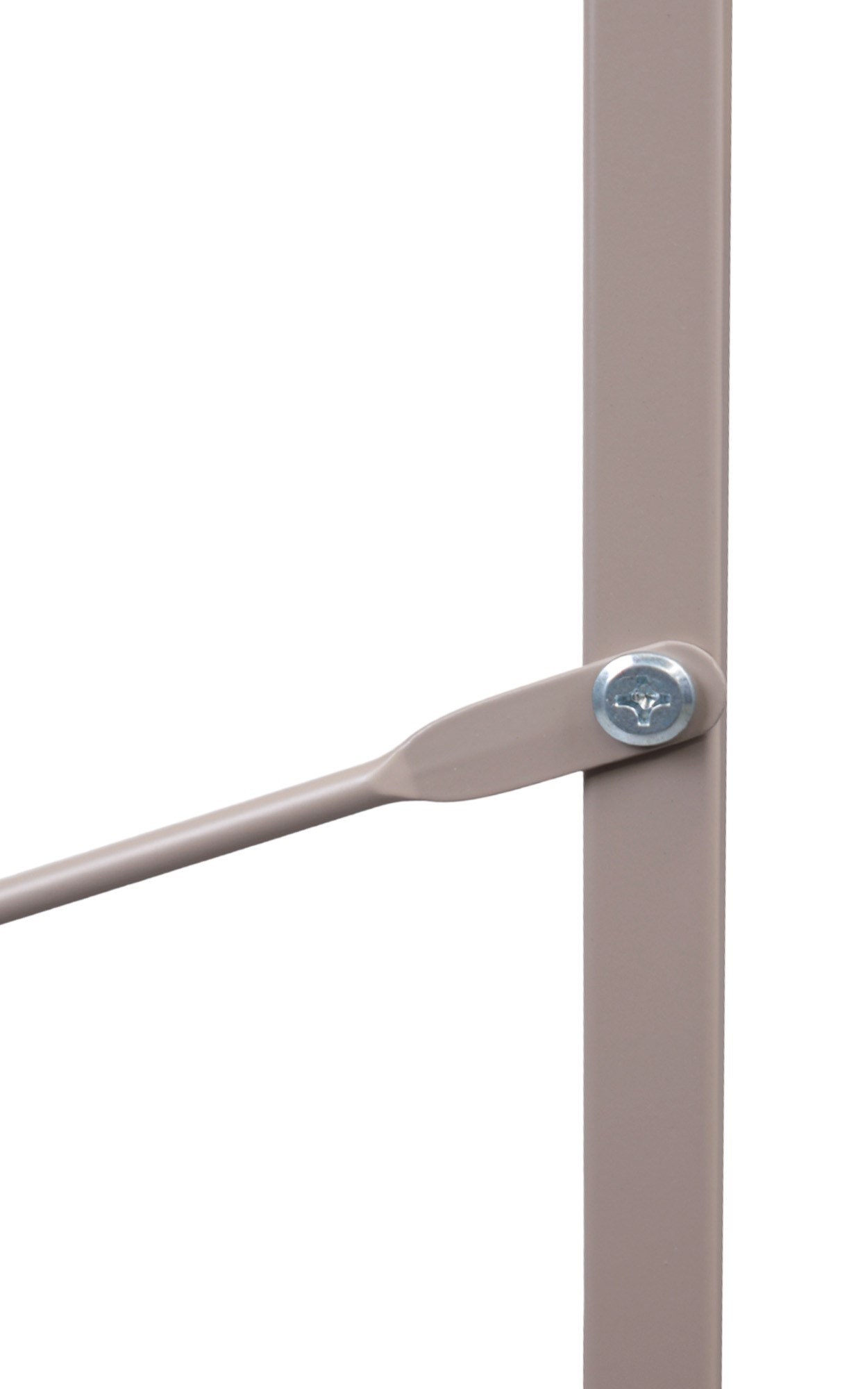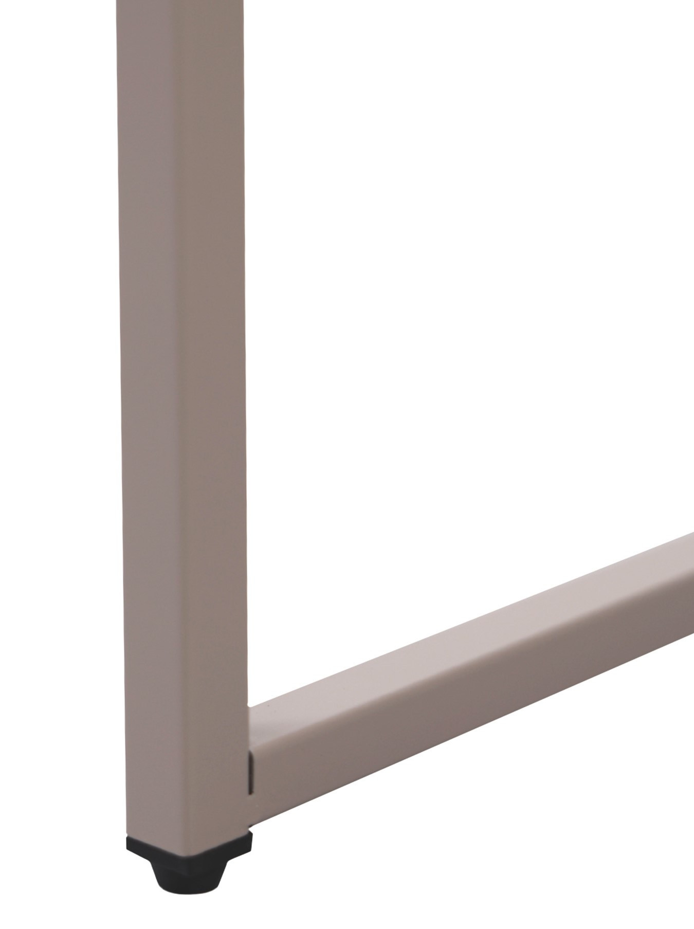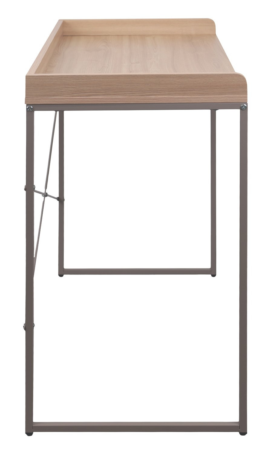 Прочный металлический каркас, окрашенный порошковым способом в серый цвет, обеспечивает устойчивость и долговечность, создавая изысканный контраст с текстурой дерева. Кромки обработаны автоматически для точной отделки и дополнительной защиты от износа.