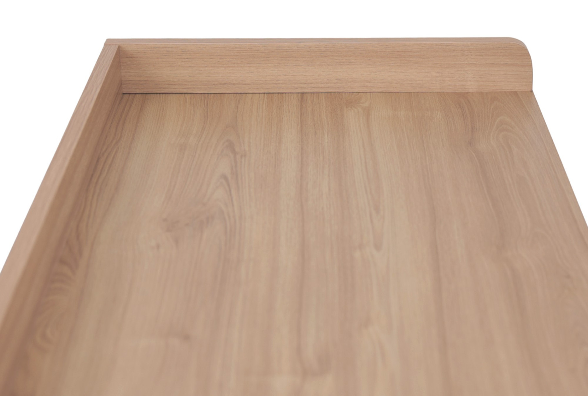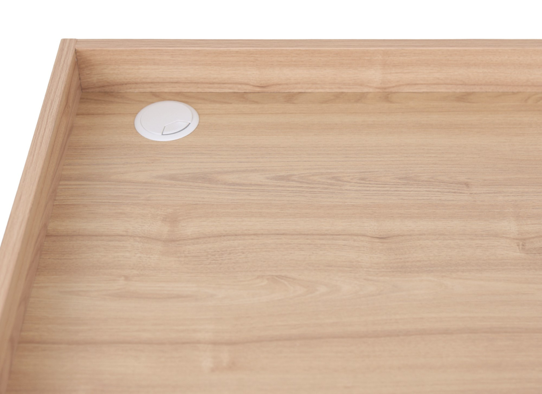 Письменный стол Ergon идеально сочетает современный дизайн и повседневную функциональность, будучи отличным решением для компактных рабочих пространств, домашнего офиса или учебной комнаты. Столешница выполнена из ламинированного ДСП класса E1 в тёплом оттенке Дуб M37, придающем изделию элегантный и натуральный вид, легко сочетающийся с различными стилями мебели.