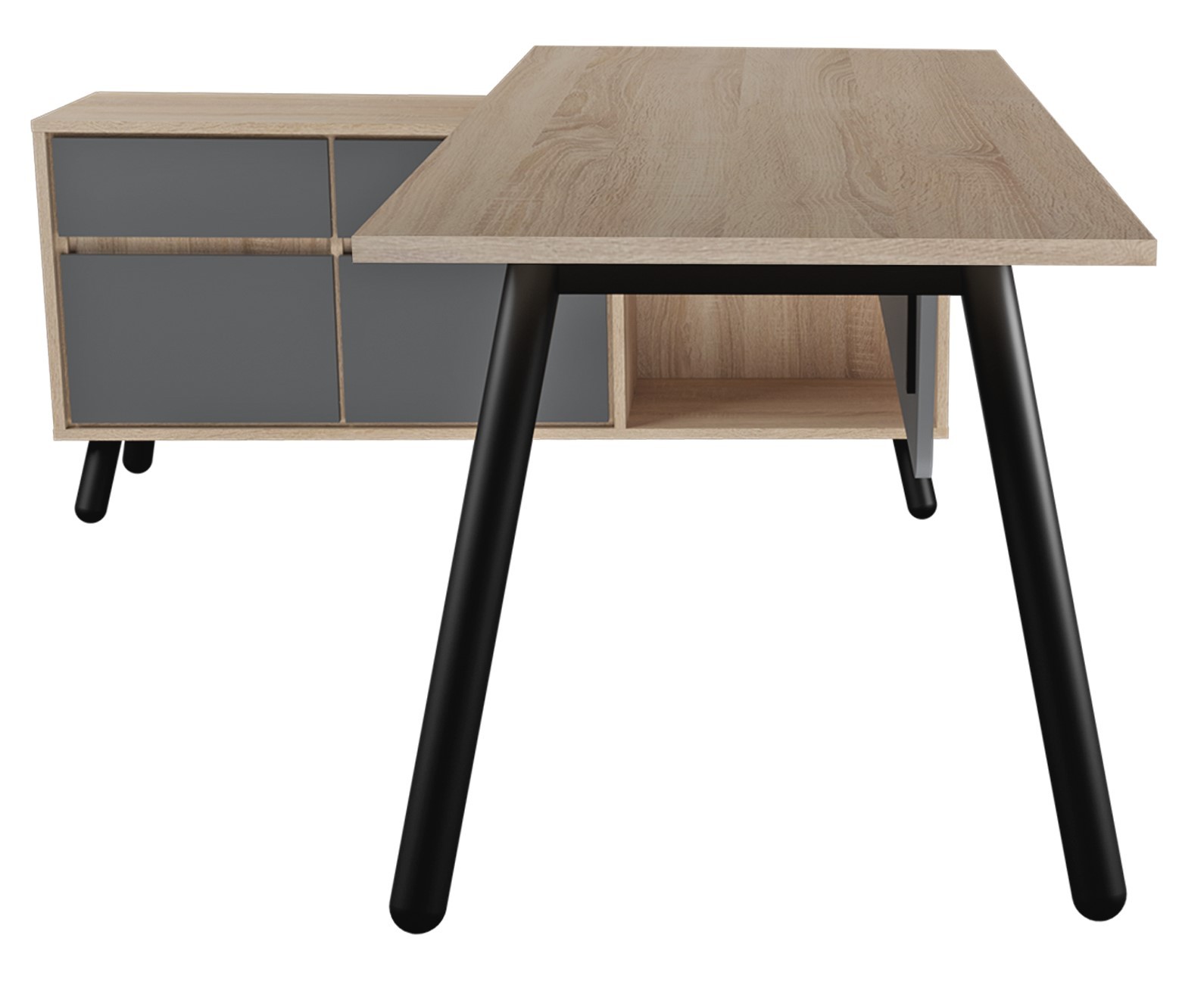 Каждый элемент этого стола был разработан, чтобы обеспечить качество и долговечность, эргономичность. Столешница изготовлена из меламиновой ДСП толщиной 28 мм, что придает ей прочность и долговечность.