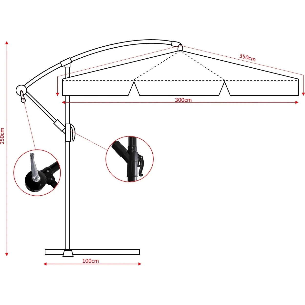 Модель обладает повышенной гибкостью благодаря регулировке высоты до 250 см и возможности изменять угол наклона купола. Комплект является полным, включая необходимую для устойчивости подставку и практичный чехол для хранения. Функциональный дизайн делает этот зонт идеальным выбором для любой современной террасы.