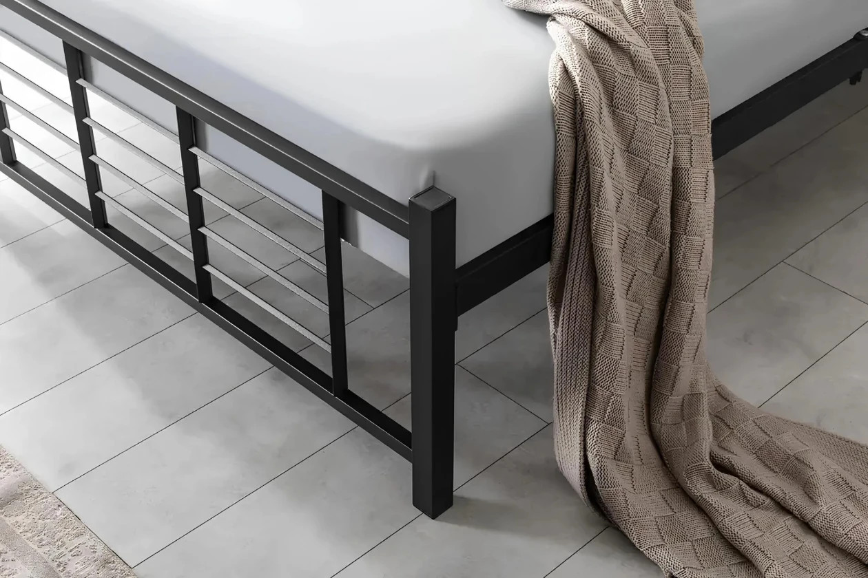 Металлическая кровать Evger K-01 сочетает в себе прочную конструкцию, минималистичный дизайн и высокую долговечность. Каркас выполнен из трёх типов квадратных металлических труб: