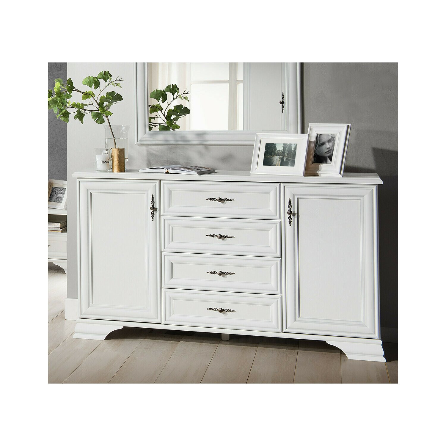 Комод Кентуки KOM2D4S — это выдающийся предмет мебели, отражающий элегантность классического стиля благодаря безупречной отделке в цвете Белый Альпийский. Прочный корпус из ламинированного ДСП дополнен фасадами из ДСП с накладками из МДФ, что обеспечивает изысканный внешний вид и долговечность. При внушительной ширине 155 см и продуманной планировке, состоящей из 2 дверок и 4 ящиков, этот комод украинского производства идеально подходит для тех, кто ищет вместительное пространство для хранения и вневременной дизайн.