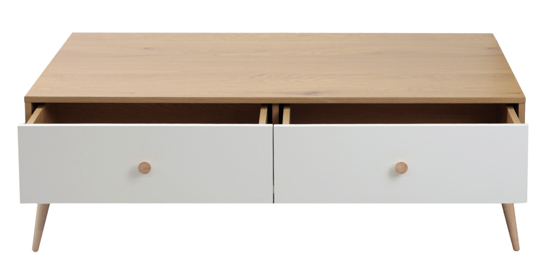 Конструкция поддерживается металлическим каркасом, окрашенным электростатическим способом, который обеспечивает стабильность, долговечность и приятный контраст с текстурой дерева. Щедрая поверхность размером 120×60 см предоставляет достаточно места для декора, журналов, кофе или необходимых аксессуаров.