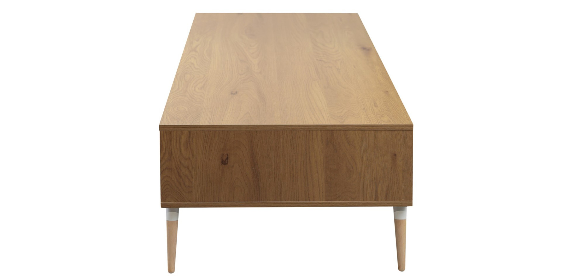 Журнальный столик Marani сочетает в себе современную элегантность и практичную функциональность, идеально подходя для современных гостиных или лаунж-зон. Столешница изготовлена из ламинированного ДСП с отделкой Дуб M33/M58, что обеспечивает естественный и гармоничный вид, а также устойчивость к ежедневному износу.