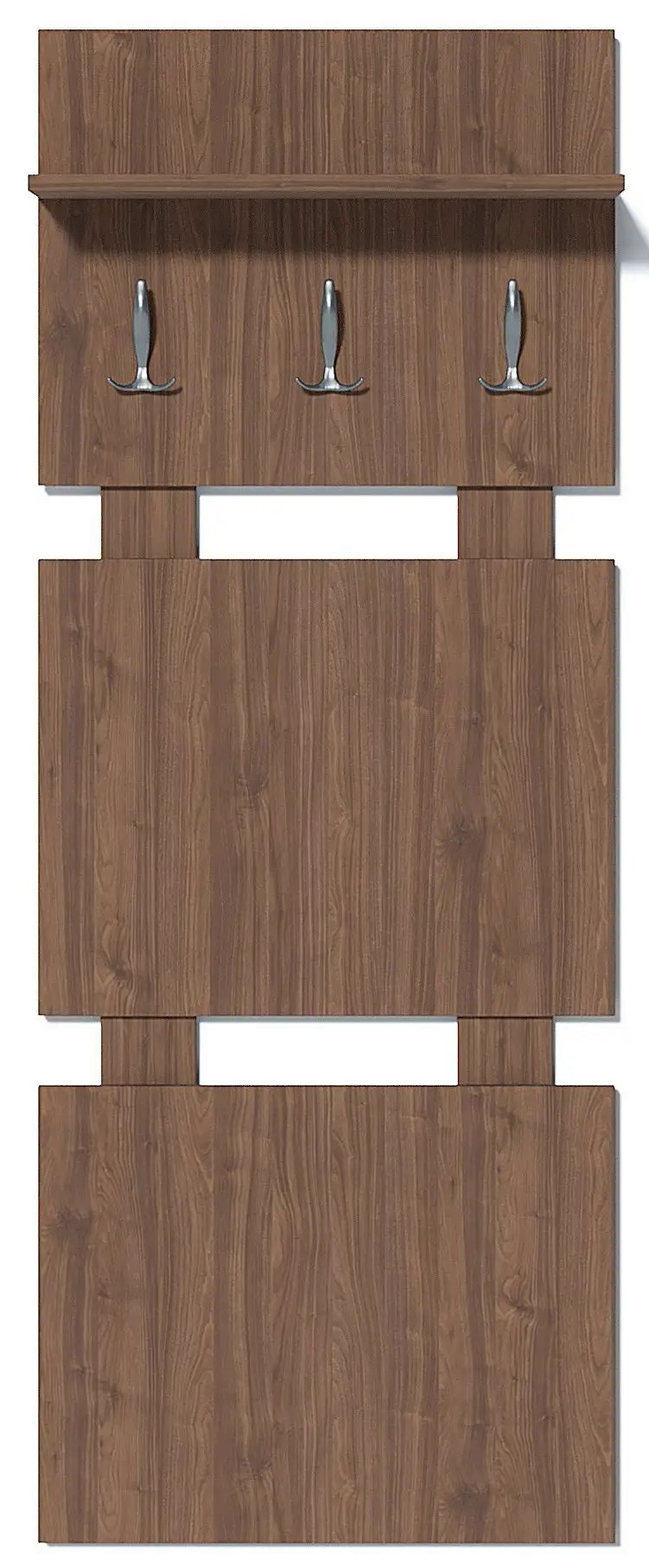 - Модуль 8 - Навесная вешалка позволит разместить сезонную одежду всей семьи. Она состоит из 3-х панелей соединенных вертикальными рейками. Полка, закрепленная над крючками для одежды, предназначена специально для головных уборов и зонтов. Максимальная нагрузка на полку составляет 5 кг.