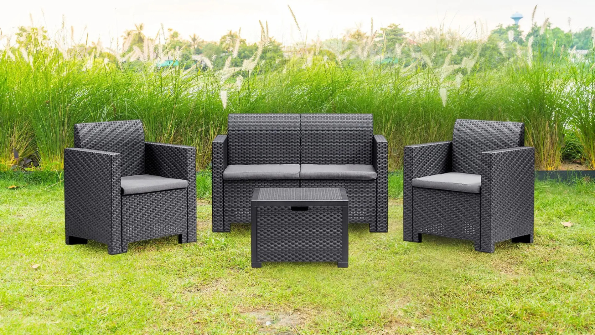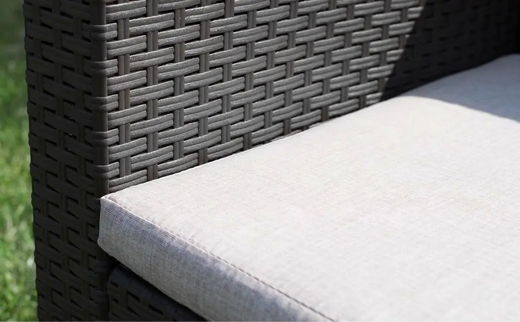 Диван и кресла оснащены мягкими подушками, которые обеспечивают дополнительный комфорт во время релаксации. Подушки снабжены чехлами на молнии, что позволяет легко снимать их для стирки. Изготовленный из полипропилена, набор мебели имитирует роскошный вид натурального ротанга, но обладает дополнительными преимуществами, которые делают его идеальным для использования на открытом воздухе. Полипропилен — это прочный и долговечный материал, способный противостоять солнечному свету, влаге и другим погодным условиям, сохраняя при этом свою привлекательность.