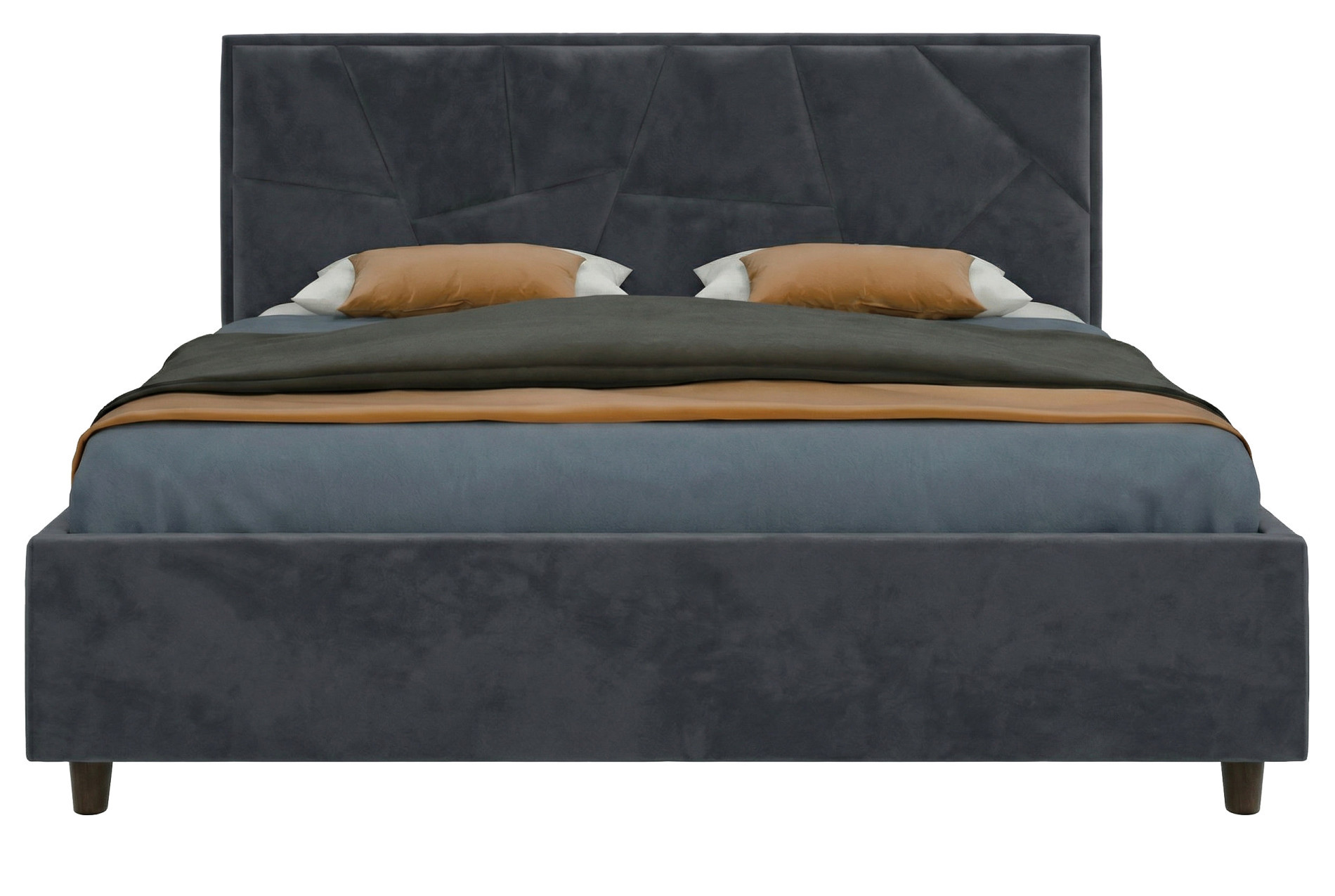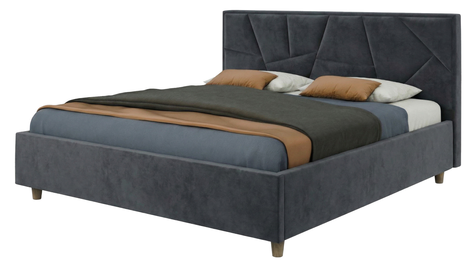 Внешние размеры кровати составляют 172 см в ширину и 213 см в длину, обеспечивая достаточно места для комфортного сна. Высота изголовья — 103 см, что позволяет удобно опираться спиной, а высота изножья составляет 31 см. Ножки высотой 10 см обеспечивают устойчивость конструкции и способствуют хорошей вентиляции пространства под кроватью.