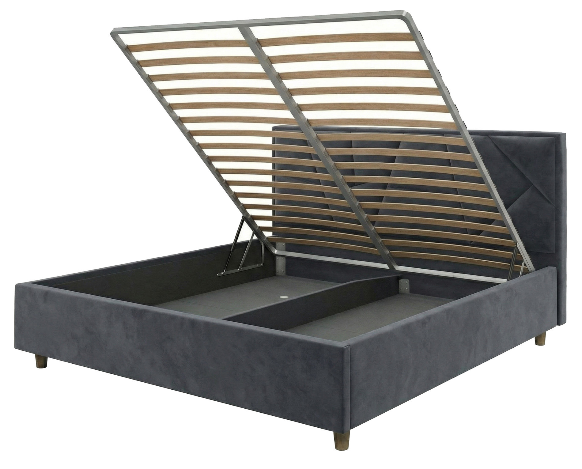 Основание кровати оснащено полноценной опорой для матраса, подъемным механизмом и ящиками для хранения. Это позволяет удобно хранить постельное белье, одеяла и другие необходимые вещи. Подъемный механизм обеспечивает легкий доступ к отделениям для хранения и помогает поддерживать порядок в спальне.