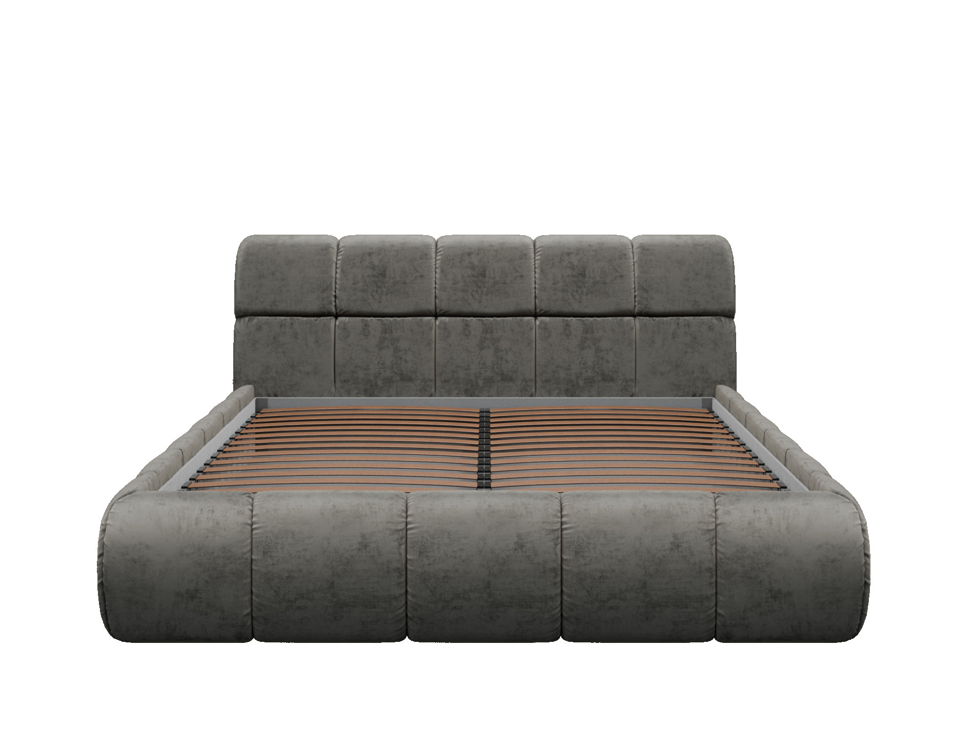 Внешние размеры кровати составляют 185 см в ширину и 242 см в длину, что обеспечивает достаточно места для двух человек. Высота изголовья — 88 см, благодаря чему можно удобно опираться во время чтения или отдыха, а высота изножья составляет 35 см. Обивка выполнена из приятной на ощупь ткани, которая гармонично дополняет современный внешний вид кровати. Кровать произведена в Украине.