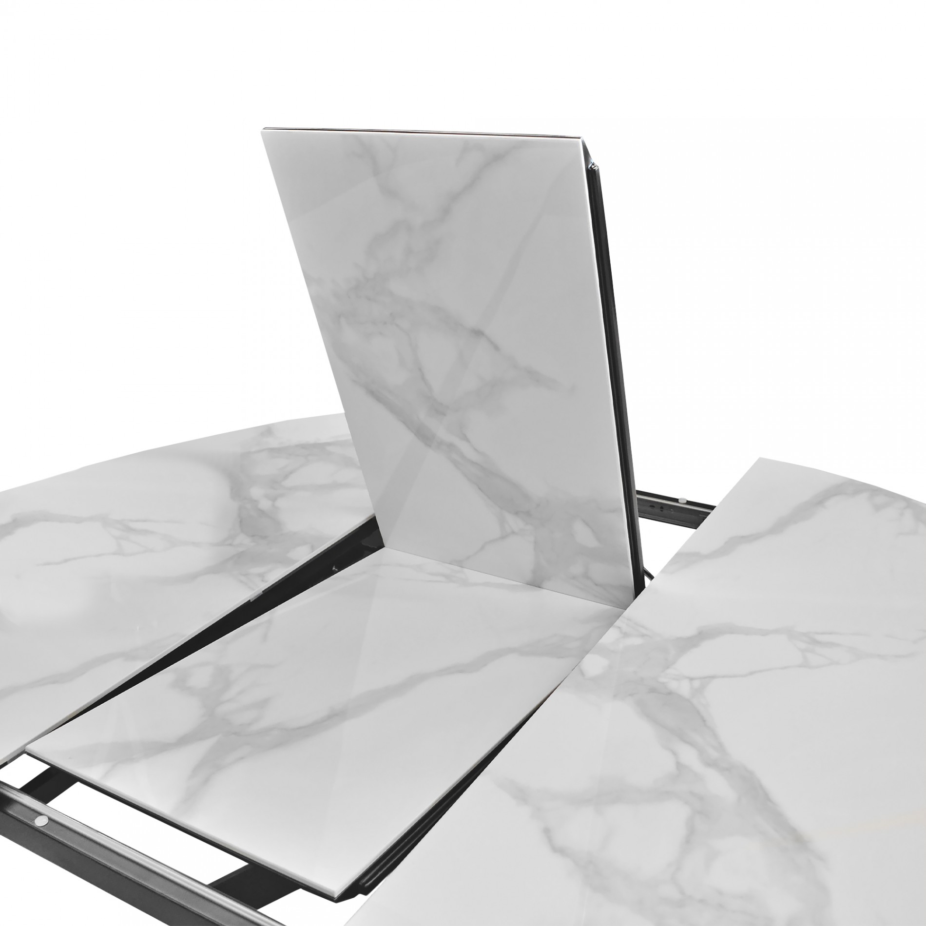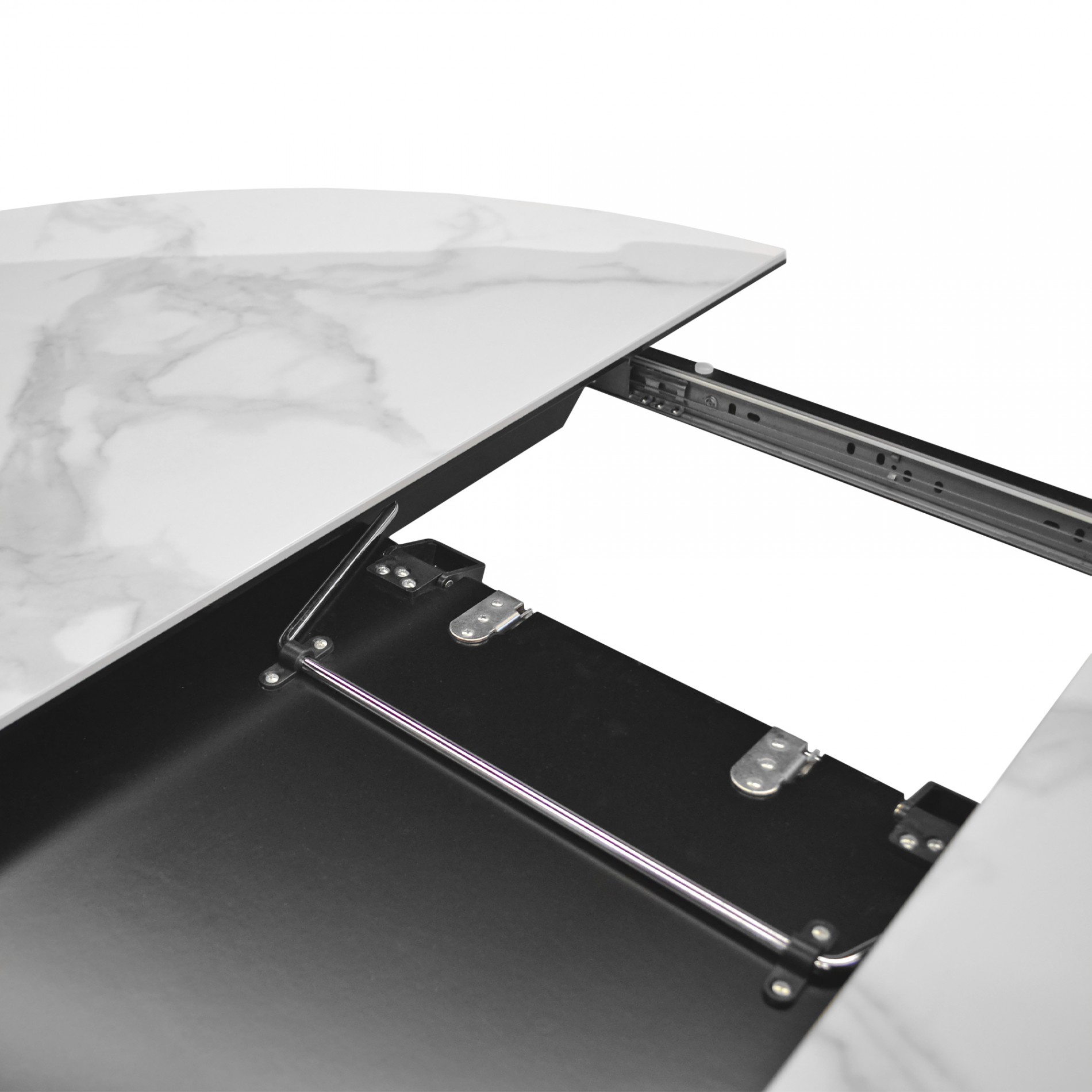 Этот стол впечатляет керамической столешницей, которая не только придает ему современный вид, но и защищает его от времени. Диаметр столешницы составляет 110 см, что обеспечивает достаточно места для семейного обеда или посиделок с друзьями. Что делает его действительно особенным, так это возможность расширения с возможностью добавления дополнительных 40 см, что позволяет адаптировать размер стола к вашим потребностям.