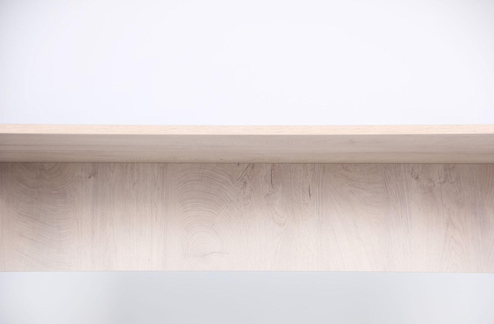 Письменный стол Pluto впечатляет современным дизайном и гармоничным сочетанием материалов. Столешница выполнена из ДСП толщиной 18 мм в оттенке Дуб Эндгрейн Элегантный, с кромкой 2 мм для прочной и аккуратной отделки. При глубине 600 мм и высоте 750 мм стол обеспечивает комфорт в ежедневном использовании. Металлический каркас из стали в цвете черный графит гарантирует устойчивость и долговечность, делая модель подходящей как для офиса, так и для дома.