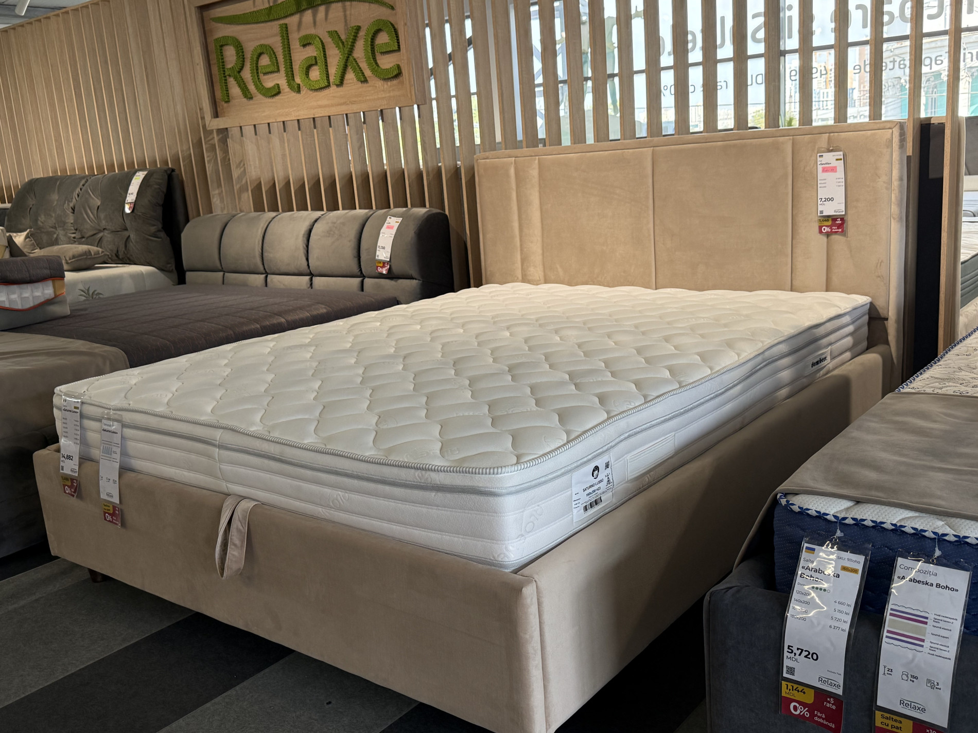 Кровать “Bianca” входит в категорию «Эконом». Данная модель производится в нескольких стандартных постельных тонах: серый, бежевый, кофейный. Модель включает в себя ящики для хранения белья с функцией проветривания и механизм поднятия кровати. Используется ткань "London", износостойкая и долговечная.